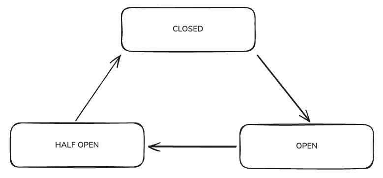The circuit breaker operates in three distinct states, each serving a specific purpose in the failure detection and recovery process: